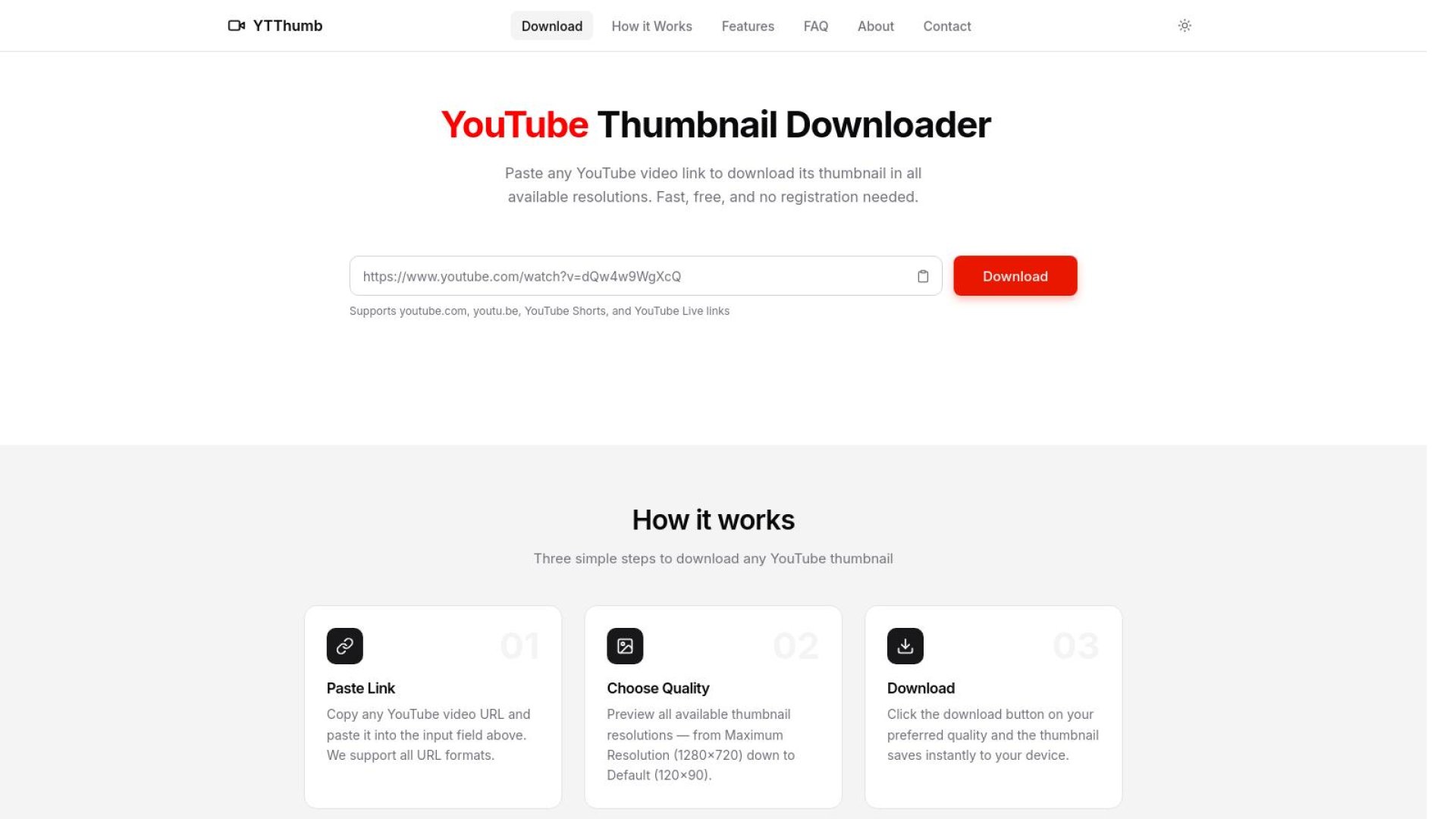 - Thumbnail Downloader – Download YouTube video thumbnails in HD (1280×720), HQ (480×360), SD (640×480), and all available resolutions.